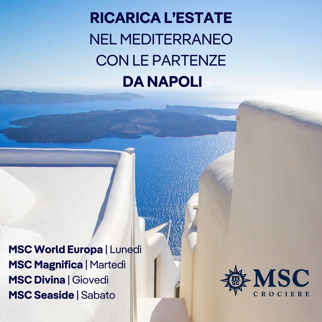 “Ricarica L’Estate” 2025, Nel Mediterraneo con le partenze da Napoli. Chiedi le info al tuo consulente di viaggio.